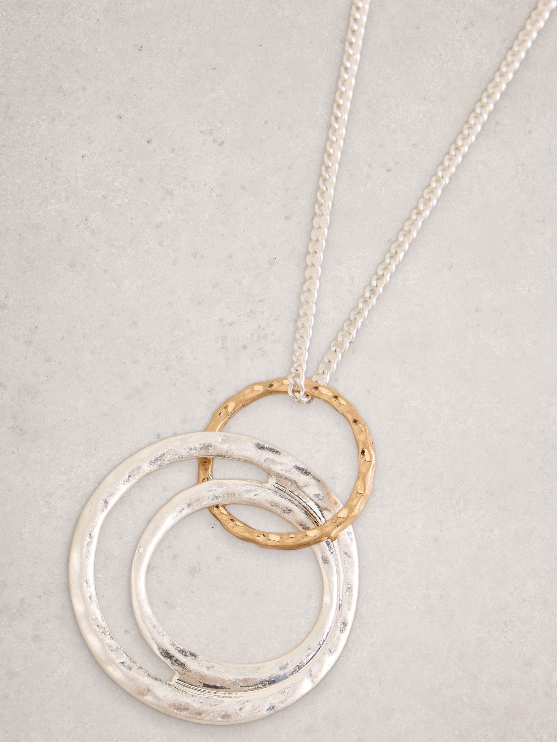Silver Chain Necklace With Two-Tone Hoop Charms