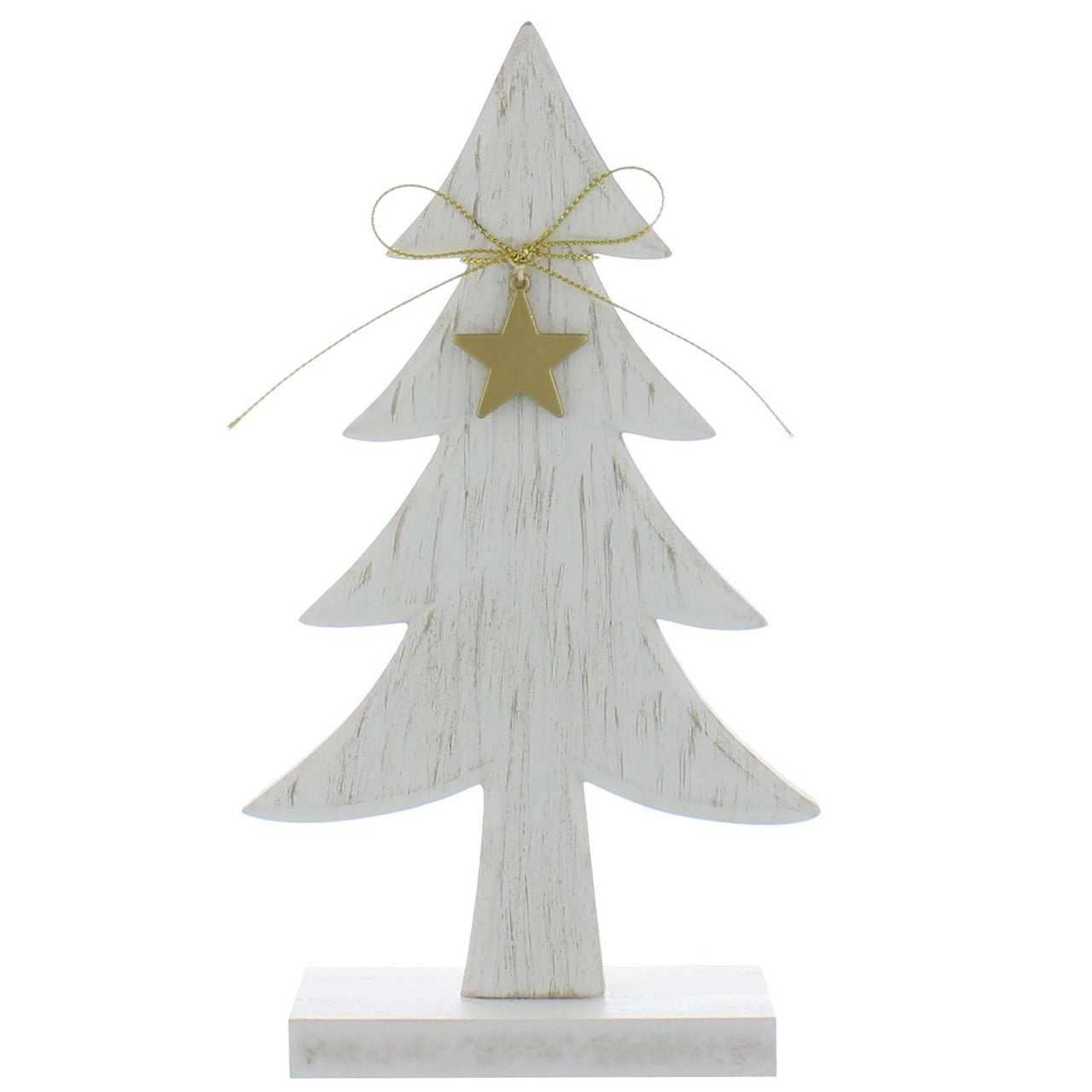 This freestanding 21cm wooden tree brings a charming, rustic accent to your seasonal displays this year. Crafted entirely from white painted wood, it features a delicate gold star embellishment at the apex for a classic look. It is perfectly sized for adding subtle festive cheer to mantels, shelves, or tabletops throughout the entire winter season.