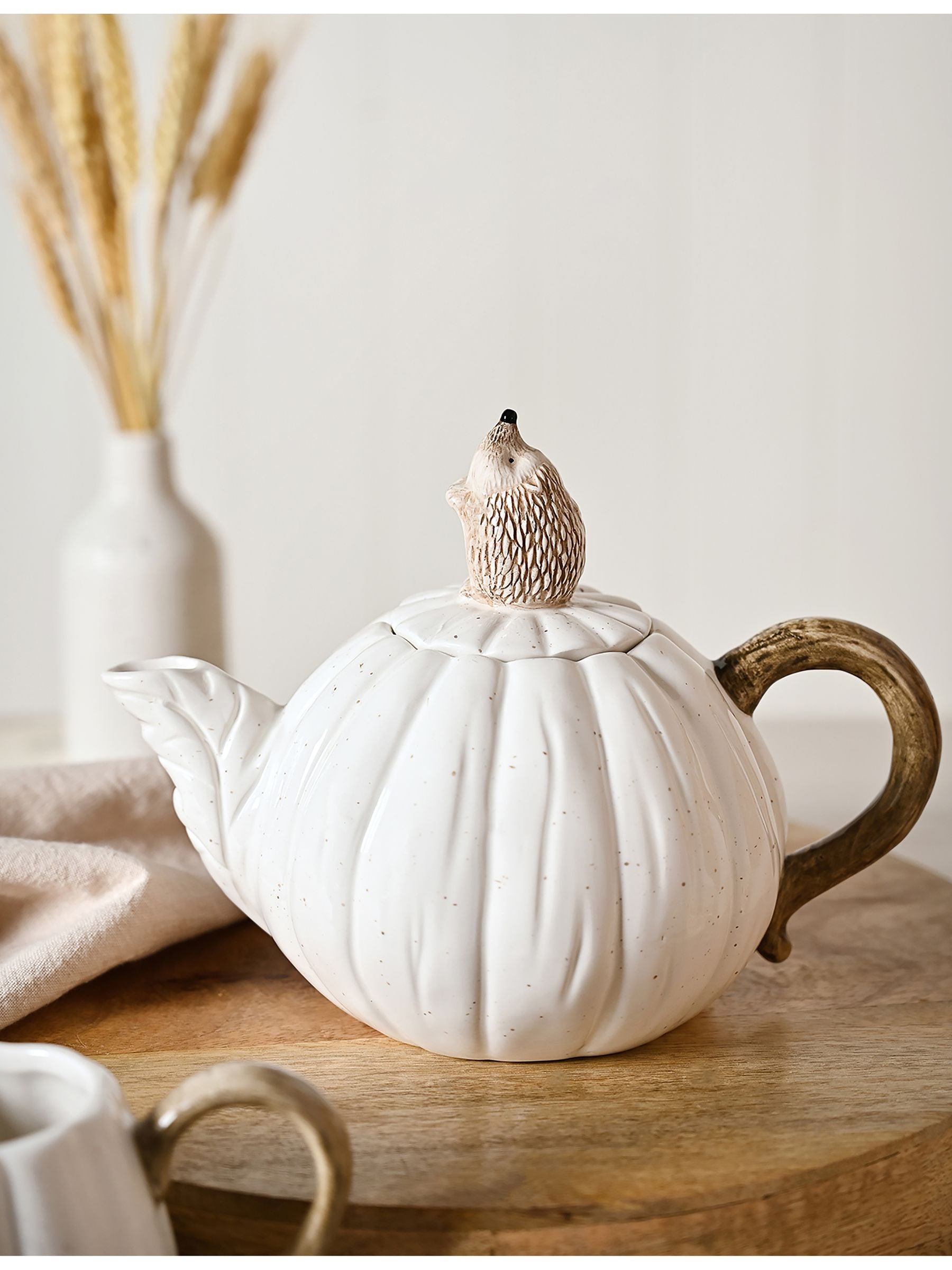 Add a playful touch to your kitchen with this charming ceramic teapot, designed in the shape of a hedgehog. Its delightful design brings a sense of countryside whimsy to tea time, whether you're hosting guests or enjoying a quiet moment to yourself. Made from durable ceramic, it features a generous capacity and an ergonomic handle for easy pouring. Display it on a shelf or use it daily—it’s a lovely blend of function and character that brightens any space. Size : 0.