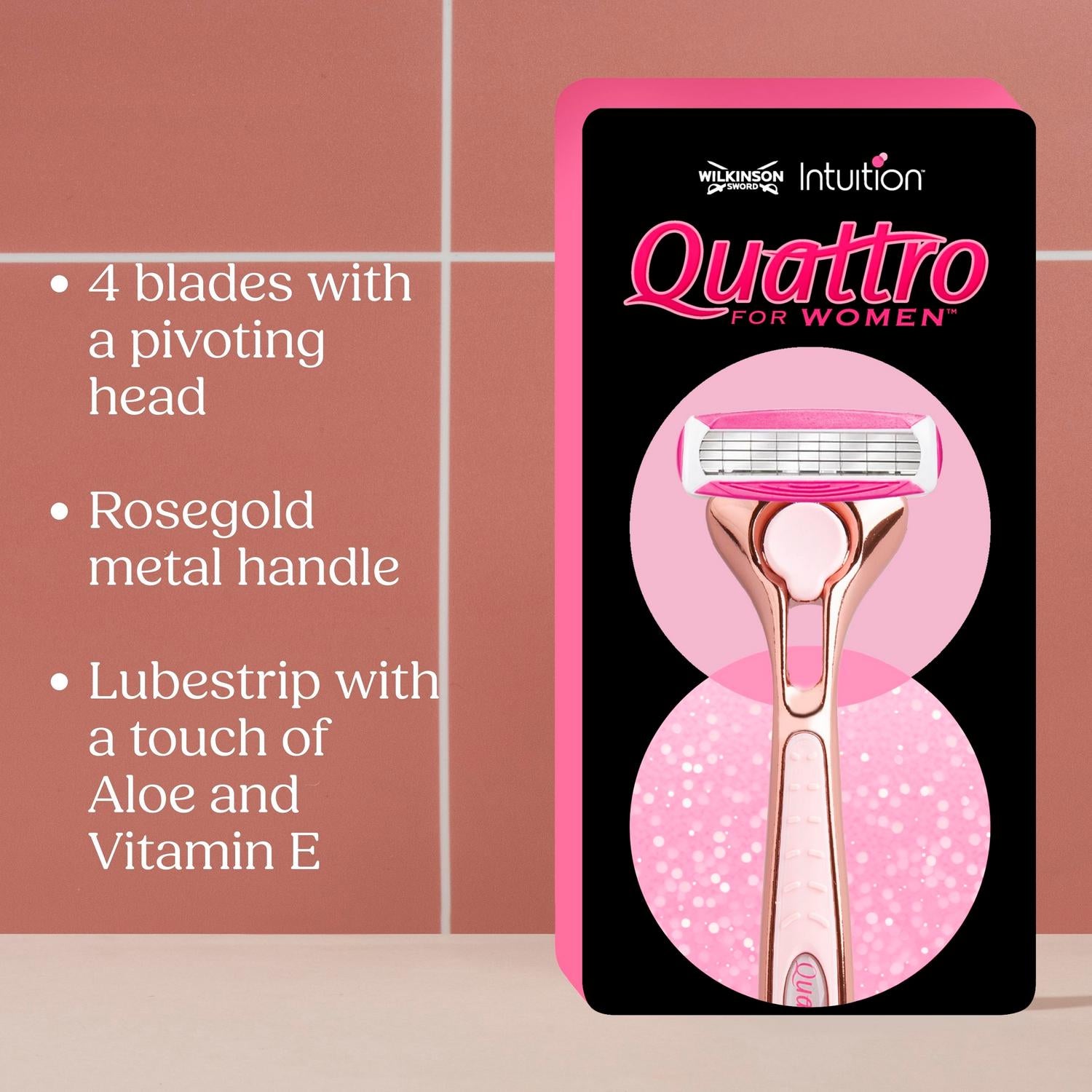 - This pack contains one Quattro for Women Rose Gold Razor handle with x 5 blades