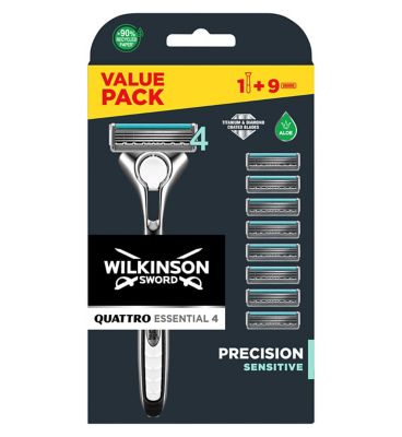 Read MoreWilkinson Sword Quattro Essential 4 Precision Senstive Razor delivers a close and comfortable shave.