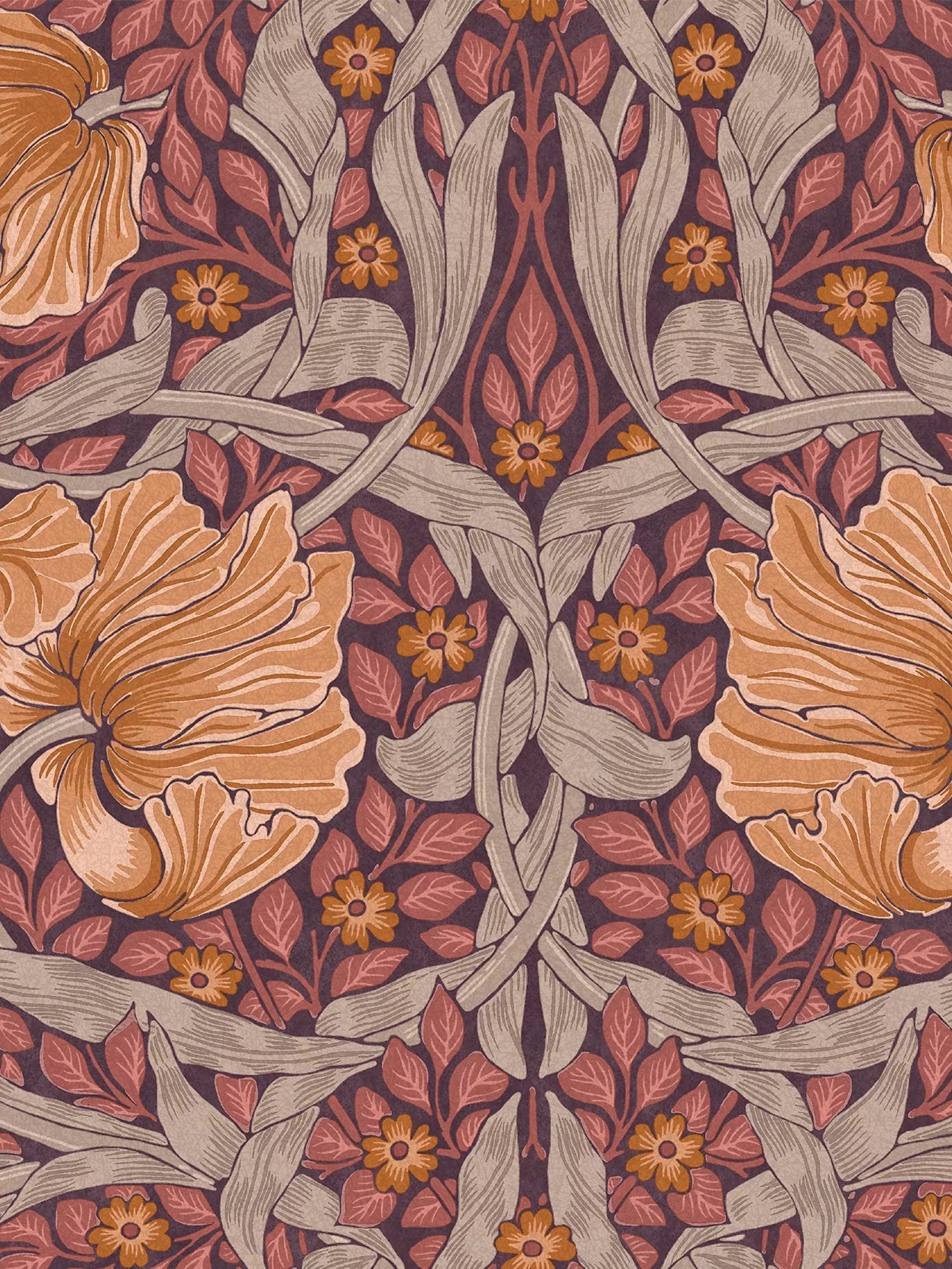 The design layout is almost symmetrical and was hung at Kelmscott Manor, the summer home of William Morris in West Oxfordshire. This matte finish wallpaper would make a statement in any room with its unique and captivating heritage design.