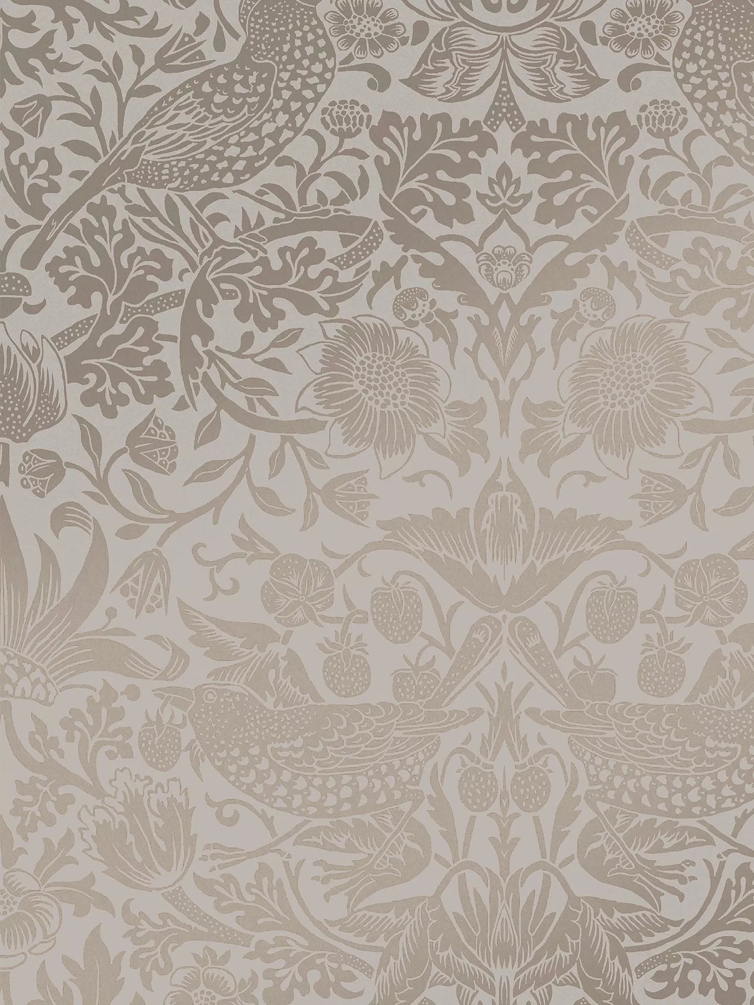 Designed in 1883, Strawberry Thief remains one of William Morris's most popular and iconic designs. Strawberry Thief fibrous presents Morris' famous design in a beautiful metallic soft print, giving texture and intrigue.