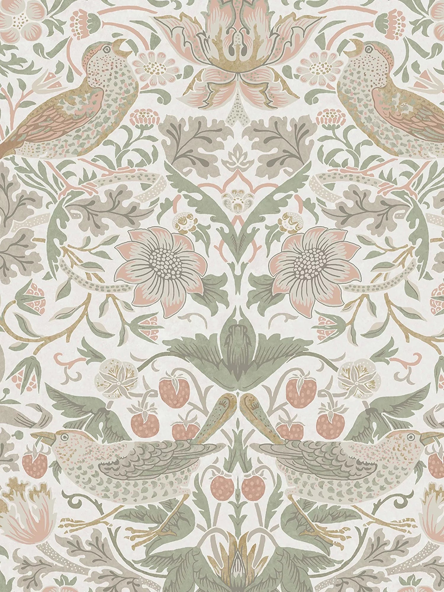Designed in 1883, Strawberry Thief remains one of William Morris most popular and iconic designs. Printed on a matte finish, this wallpaper will add effortless elegance to any room.