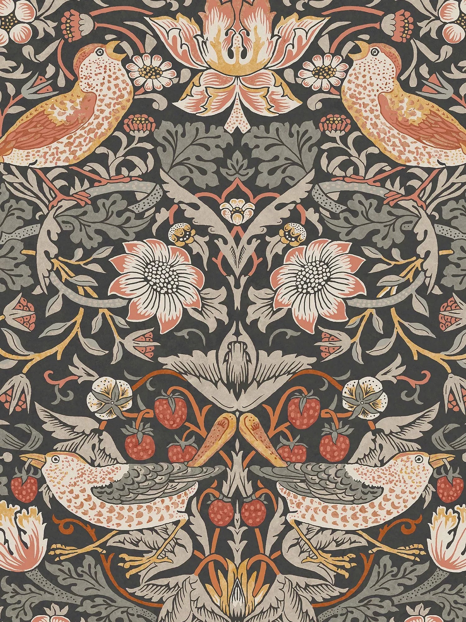Transform your walls with the timeless elegance of William Morris's Strawberry Thief wallpaper. This iconic design, inspired by the birds in Morris's own garden, brings a touch of classic British artistry to any home. A perfect addition for those seeking authentic British style.