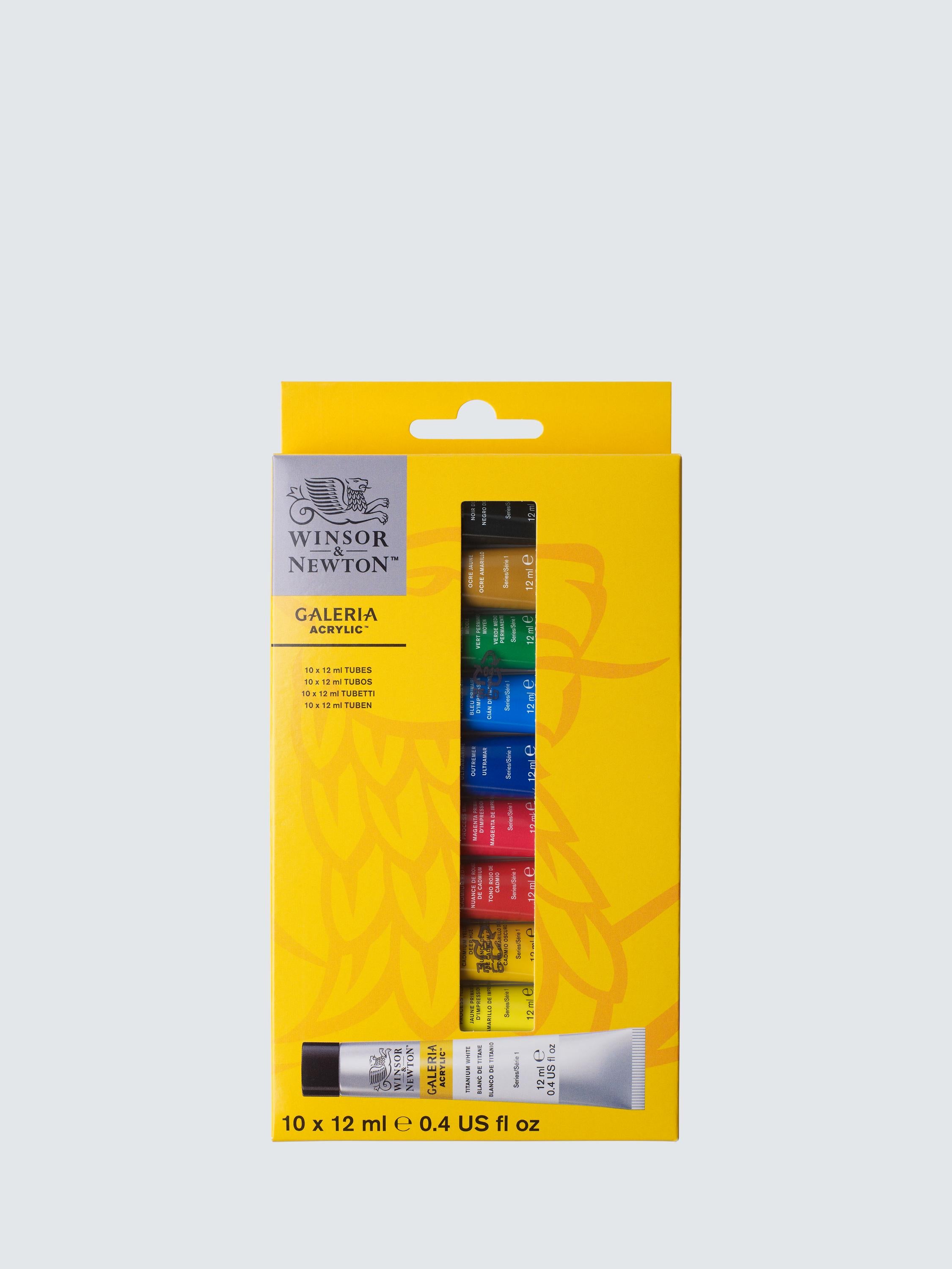 Winsor Newton Galeria Acrylic Paints Set Of 10 provides ten essential colours for artists exploring acrylic techniques. This set features high-quality, fine art pigments ensuring vibrant colour payoff and smooth application across all included shades. It is ideal for beginners and established painters seeking reliable performance in their studio work.