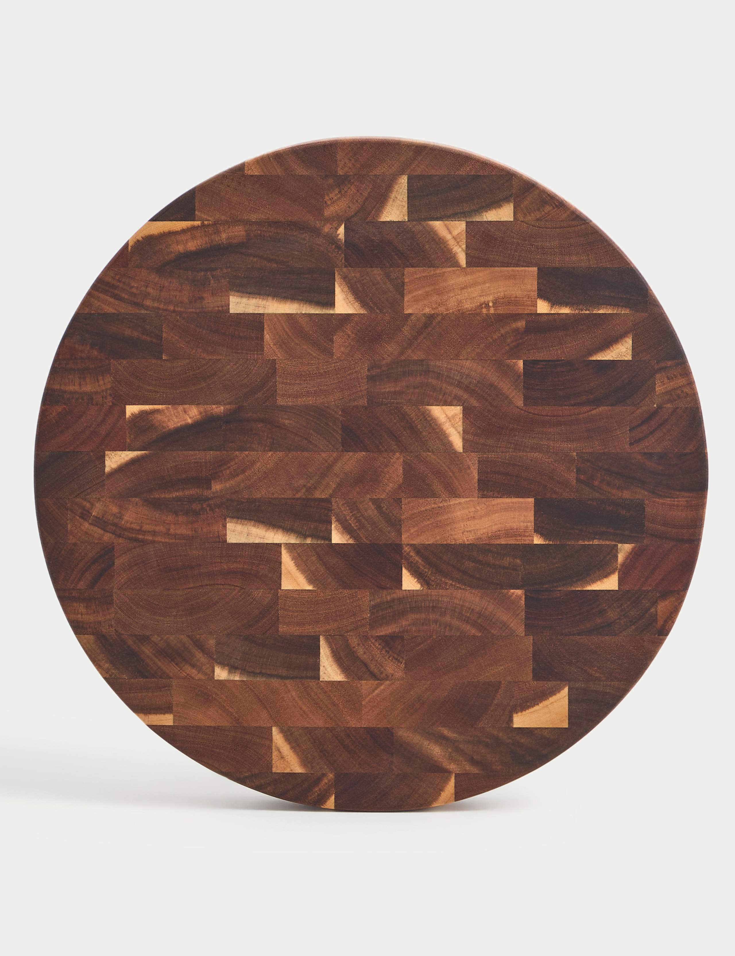 Read MoreThis wooden chopping board is made from end grain acacia, for a smart look and a durable finish. Its neat round shape lends a contemporary feel, while an indented handle makes it easy to pick up and carry.