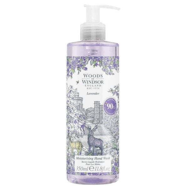 SOOTHING LAVENDER SCENT: xperience the calming aroma of Woods of Windsor Lavender Hand Wash, enriched with notes of patchouli and musk. This liquid hand soap gently cleanses while leaving a soothing lavender fragrance that lingers delicately on your skin. MOISTURISING FORMULA: Infused with moisturising ingredients, this hand wash helps soften and hydrate your skin with every use. It's designed to cleanse effectively while maintaining the natural moisture balance of your hands. CONVENIENT PUMP DISPENSER: The 350ml bottle comes with a convenient pump dispenser, making it easy to use and ideal for placing on your bathroom sink or kitchen counter. Enjoy effortless application and a luxurious hand washing experience. GENTLE ON SKIN: Formulated to be gentle on your skin, this hand wash is suitable for daily use by the whole family. It provides a rich lather that cleanses thoroughly without drying out your hands. ENHANCED HAND CARE ROUTINE: Enhance your hand care routine with Woods of Windsor's matching hand cream or lotion in lavender. This duo pampers and protects your skin with a soothing lavender fragrance, ensuring comprehensive hydration and a calming experience.