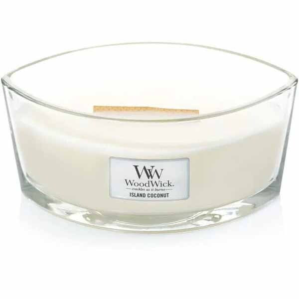 Product Information woodwick large ellipse candle in island coconut 16oz features a tropical blend of creamy coconut sweet vanilla and a hint of exotic florals creating a warm islandinspired fragrance that transports you to a relaxing beach paradise
