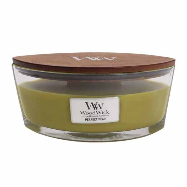 Product Information woodwick large hearthwick candle in perfect pear 16oz offers a crisp refreshing fragrance with notes of juicy pear a hint of citrus and subtle floral undertones creating a sweet uplifting atmosphere perfect for any room