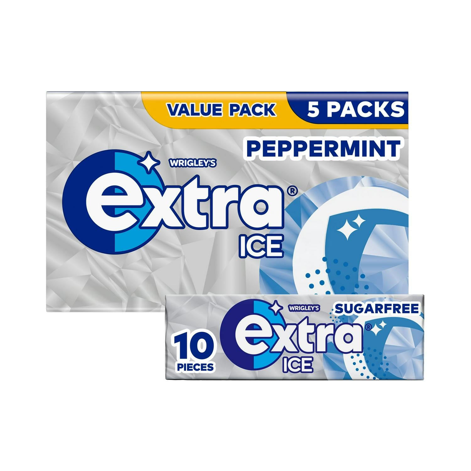 Enjoy the crisp, cool taste of Wrigley's Extra Ice Peppermint gum in this convenient multipack offering. This product provides a substantial supply for regular use.