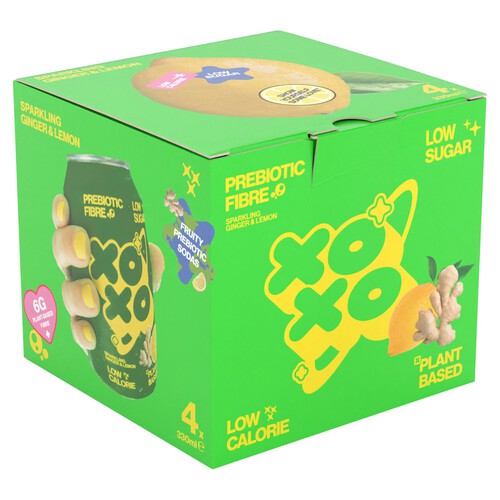 XOXO Sparkling Soda features a bold Ginger and Lemon flavour, packaged conveniently in a 4 x 330ml multipack. This drink is designed to be low in both sugar and calories, providing a crisp, refreshing experience. Enjoy the delicious citrusy flavour balanced with a crisp ginger finish.