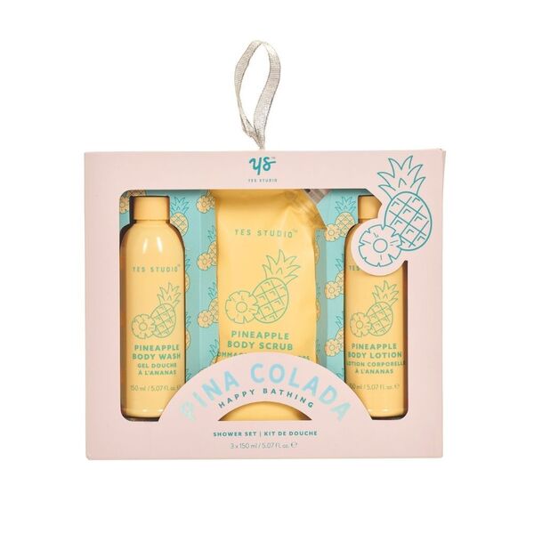 Transform your daily shower into a tropical retreat with our "Pina Colada Shower Set." Indulge in the delightful blend of pineapple-scented shower gel, scrub, and lotion for a refreshing spa experience at home.