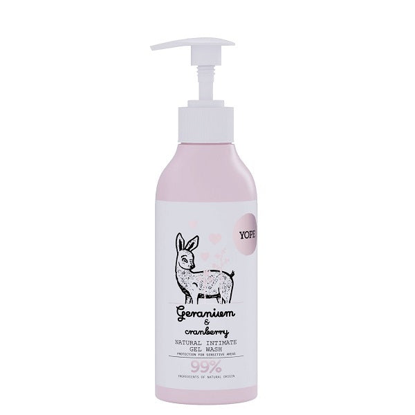 This Yope natural intimate hygiene gel, featuring geranium and cranberry, ensures daily comfort and protection against irritation. Its pH-balanced formula, enriched with prebiotics and plant extracts, supports the microbiome and prevents dryness. The wash has been proven safe and effective during independent gynaecological studies.