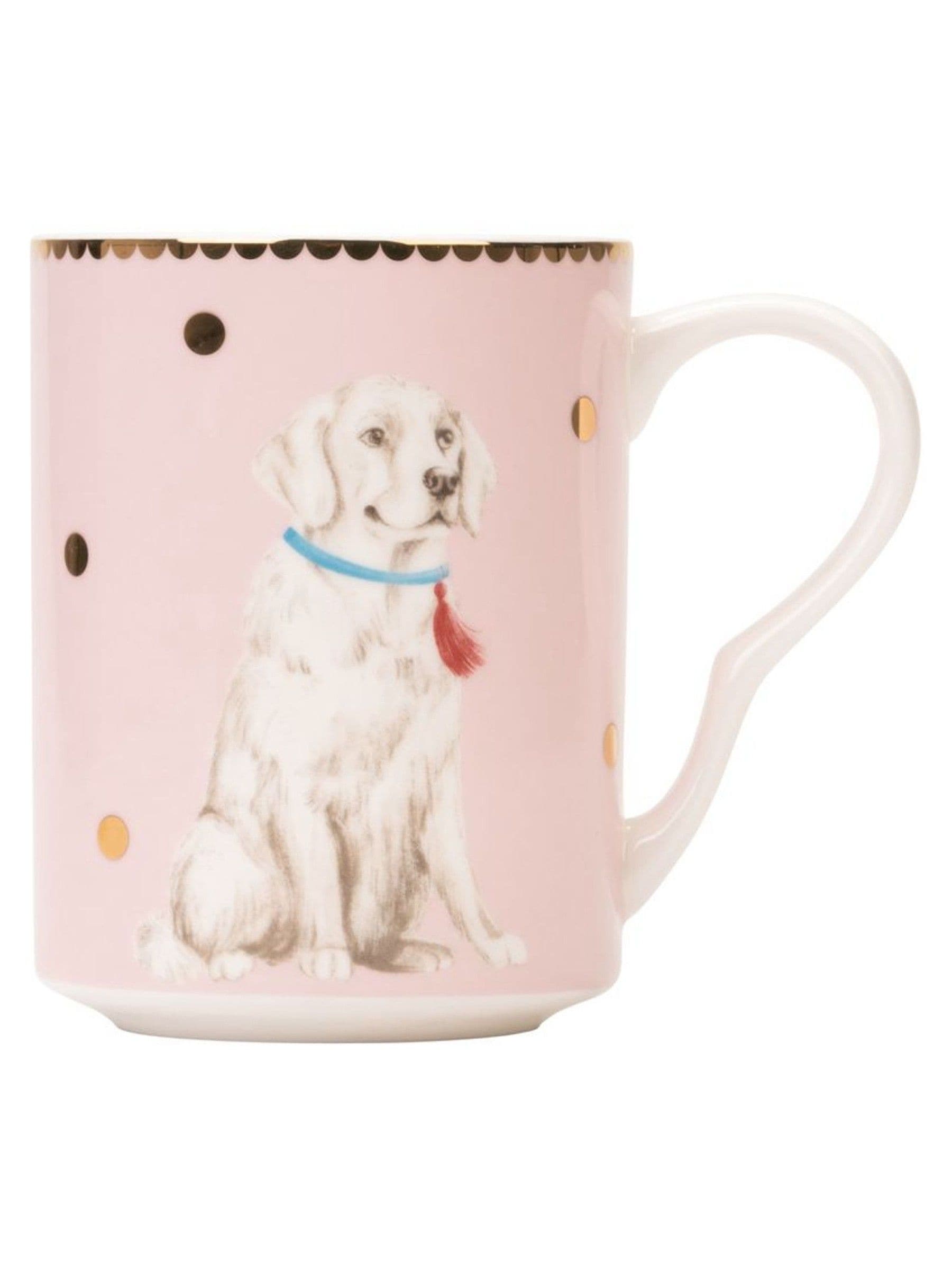 The Yvonne Ellen Labrador Set is perfect for labrador lovers. The Yvonne Ellen medium mug Labrador features an adorable labrador design with gold spots, a scalloped border, and a gold-detailed handle. The playful "Drink Up" slogan inside the rim adds a fun touch, while the fine bone china construction ensures a luxurious feel. With a 0.35L capacity, it's ideal for gifting and everyday use. The insulated, double-walled, stainless steel bottle is lightweight yet high quality, making it perfect for both hot and cold drinks. The adorable labrador design is complemented by a gold lid and edge detailing, and with its 400ml capacity, it's ideal for staying hydrated on the go.