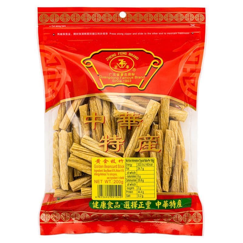 Golden Beancurd Stick is a versatile and dehydrated soy-based product with a firm yet porous texture. Made from soybean, it is a popular ingredient in various Asian cuisines, particularly in Chinese and vegetarian dishes. The sticks are often used in soups, stews, hot pots, and stir-fries, absorbing the flavours of the surrounding ingredients. With its ability to absorb and enhance the taste of different dishes, the Golden Beancurd Stick is a convenient and nutritious addition to a variety of culinary creations.