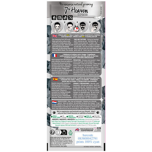 7th Heaven Mens Activated Charcoal Black Clay Peel-Off Mask