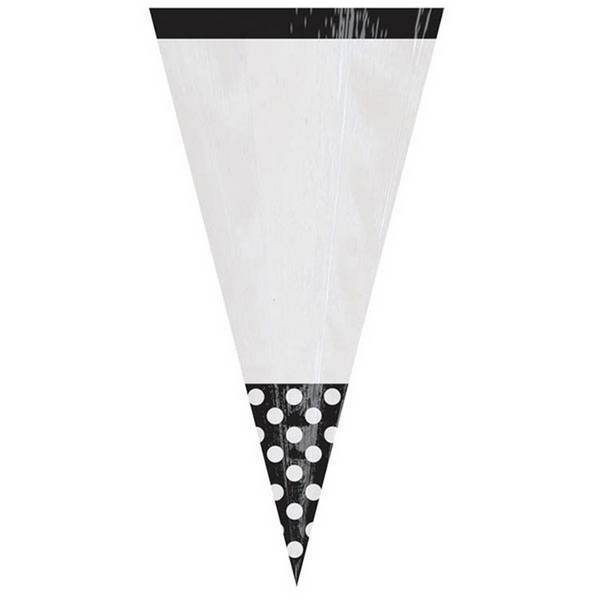 Product Information coneshaped plastic party bags with polkadot design easy to fill with candies popcorn and other goodies for easy party favors and for sweet treats
