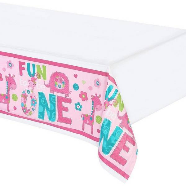 material plastic length 102in width 54in design elephant flowers giraffe hearts monkey printed spotted text occasion 1st birthday