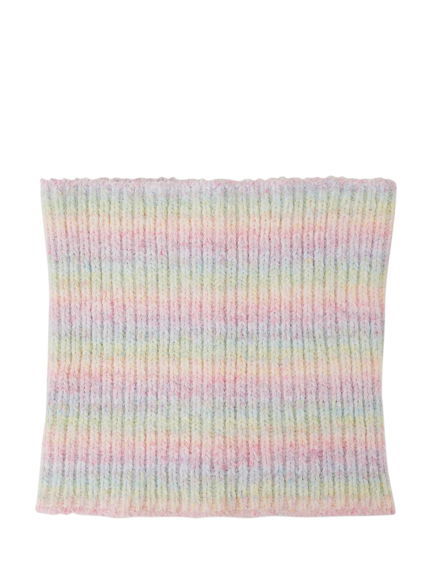 Brighten up their cold weather comforts with this snood. Slotting over the head and round the neck so comfortably, it's finished with a rainbow ombre design. So cute!