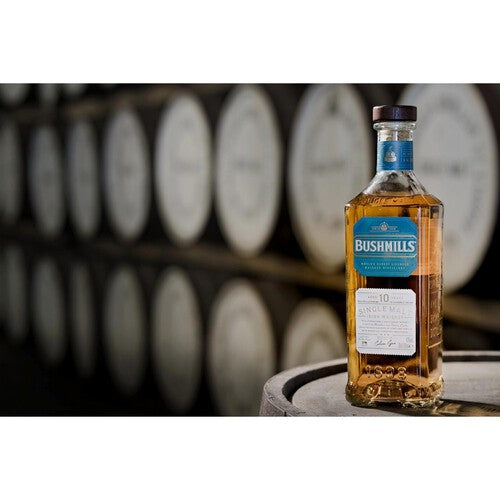 Every drop of Bushmills Malt is carefully distilled three times for exceptional purity and smoothness, using the pure water from St Columb's Rill, which flows over ancient basalt rock to the Old Bushmills Distillery. The unpeated malt barley allows the pure taste of Malt to shine through. Bushmills Malt is then left to mature in a combination of both Oloroso sherry and American bourbon seasoned oak casks, for a minimum of ten years. The result of this "two woods" maturation is a rich smooth Single Malt, with overtones of vanilla, honey and sherry.