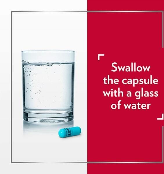 Swallow one capsule with a glass of water with or without food. Do not crush or chew the capsule. The symptoms of thrush should disappear within two days of treatment. If symptoms persist for more than 7 days, please consult your doctor.