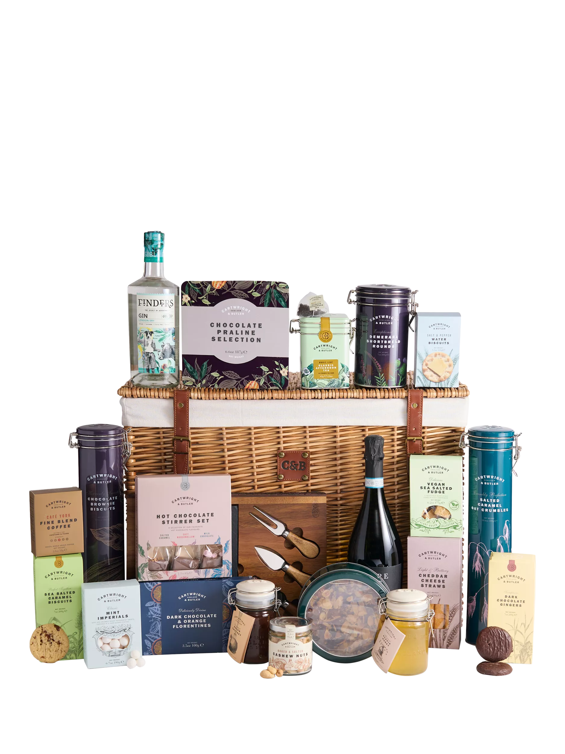 The Grand Harrogate hamper is bursting with Cartwright and Butlers finest luxury treats, snacks and spirits, presented in a beautiful steamed natural wicker basket. This exquisite hamper is perfectly made for sharing.