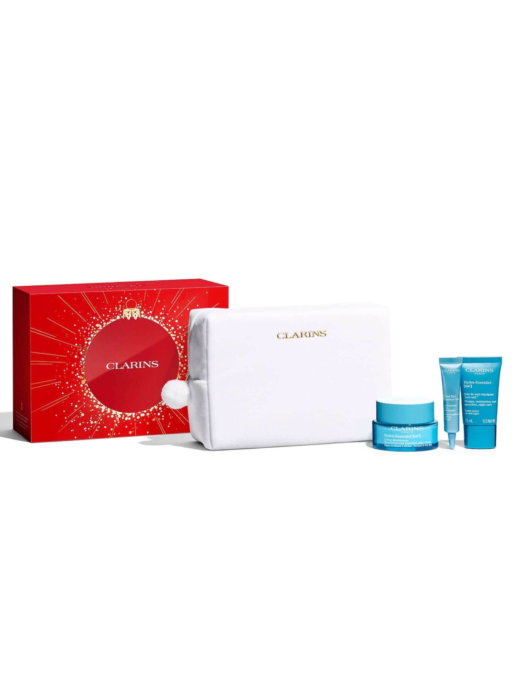 Hydrate & Glow with Hyaluronic Acid. Reveal soft, radiant skin with the Clarins Hydra-Essentiel Collection – worth over £68! This hydration-boosting routine includes a FULL-SIZE Hydra-Essentiel Day Cream (50ml) for all-day moisture, a Hydra-Essentiel Night Cream (15ml) to replenish overnight, and a Total Eye Contour Gel (7ml) to refresh and revive tired eyes.