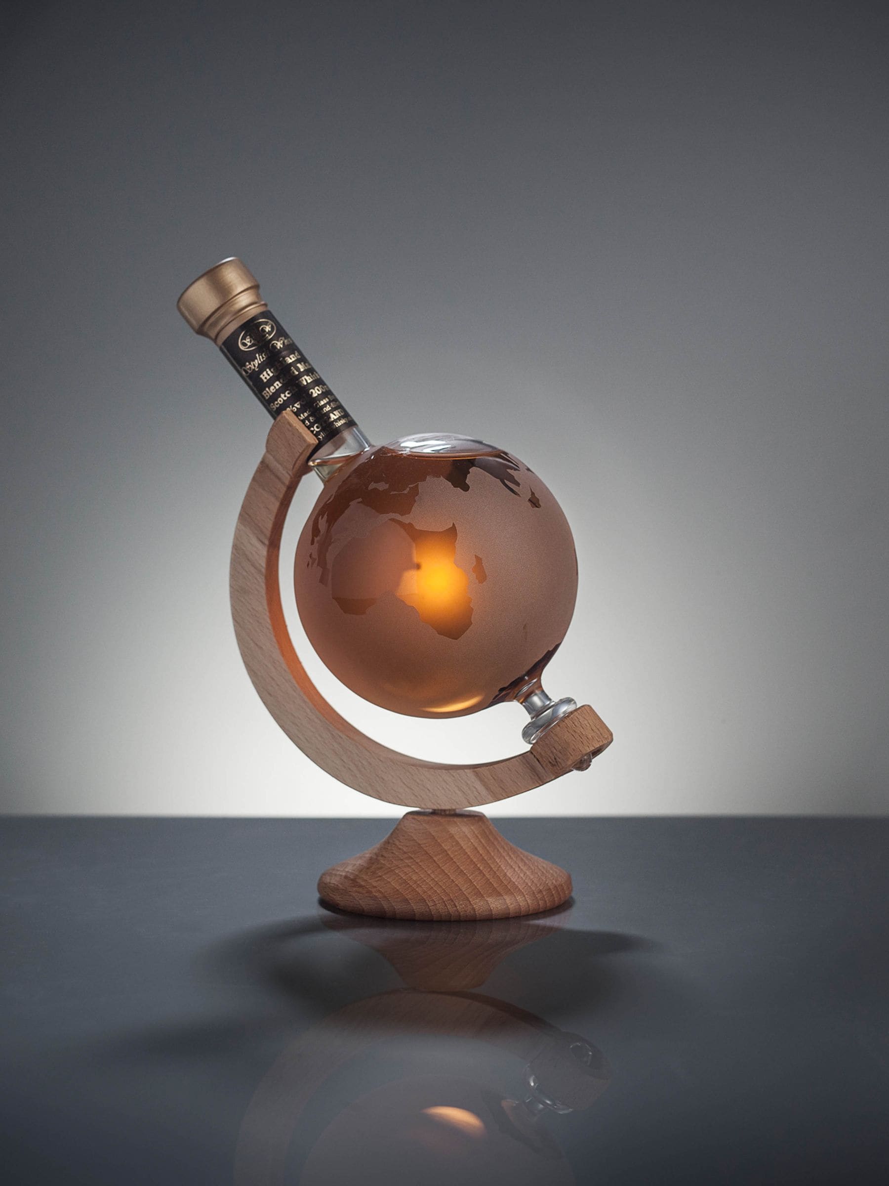 Small but perfectly formed. Designed and assembled in Scotland, this beautiful bespoke decanter is globe-shaped and stands proudly on its oak stand. Filled with Highland single malt, the globe represents the unstoppable spread of Scotland’s national drink across the rest of the world. A wonderful gift. Specification: Volume 20cl, ABV 40%. Perishable items such as food, plants, drinks and fresh flowers cannot be returned. This does not affect your right to return faulty items. It is an offence to sell alcohol to persons under the age of 18 years. By continuing with the order, you are confirming that you are aged 18 years or above. If you are buying alcohol as a gift – the recipient must also be over 18 years old.