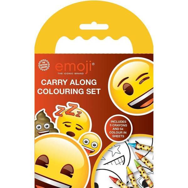 Carry Handle. Design: Emoji. 100% Officially Licensed. Contents: 64 Colouring Sheets, 6 Crayon.