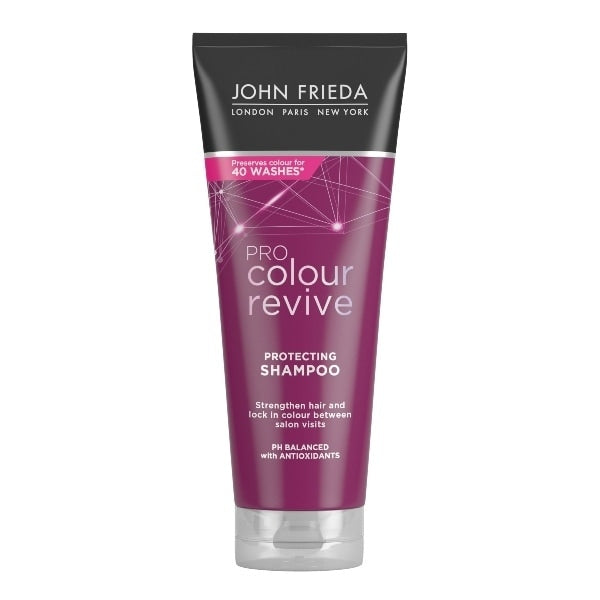 john friedas pro colour revive shampoo gently cleanses coloured hair and boosts shine while protecting your colour in between salon visits or home colouring maintain your colour for 40 washes