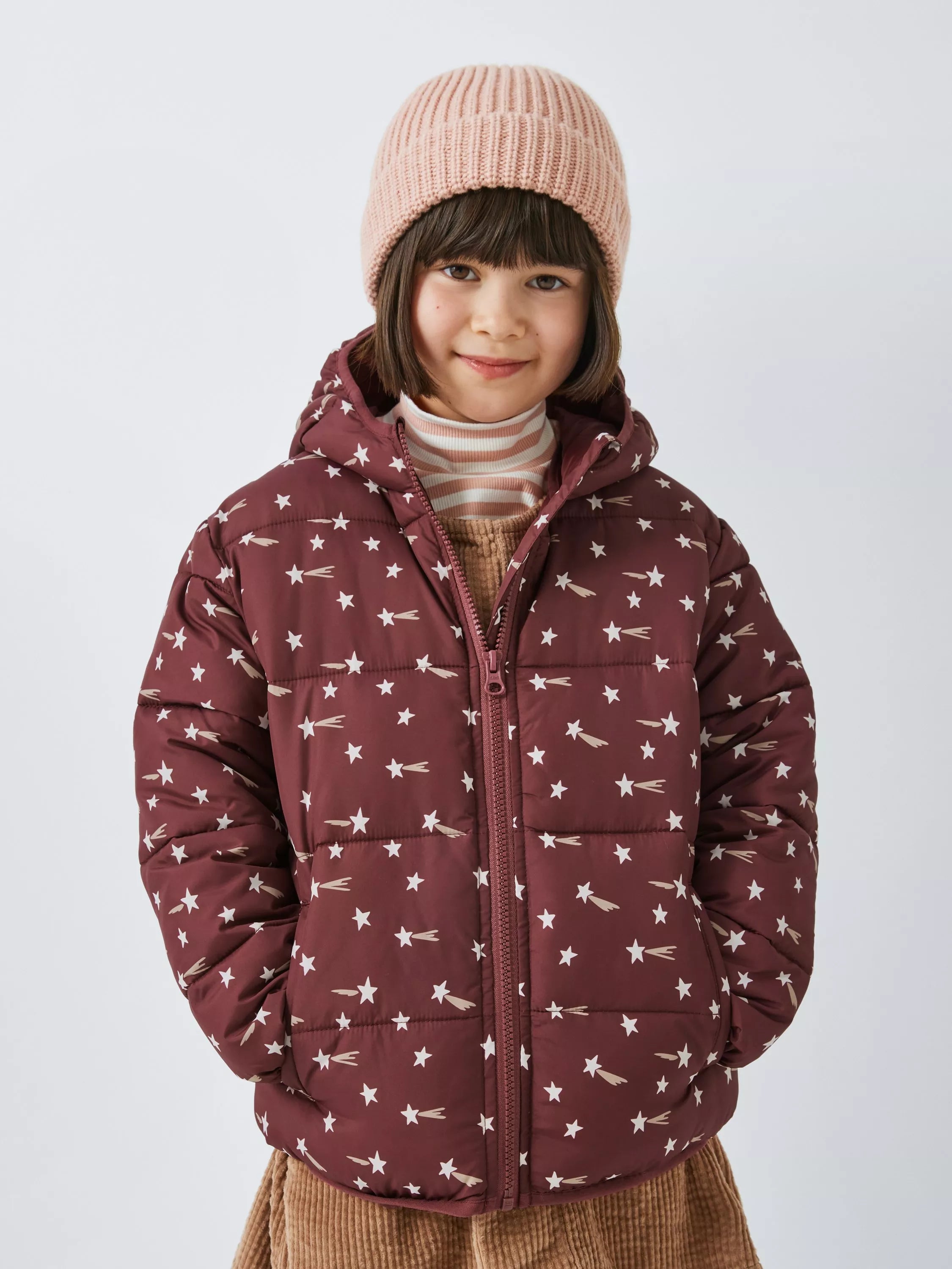 A traditional puffer jacket covered in a fun shooting star print. Completed with two side pockets and a zip guard to protect against nasty nips.