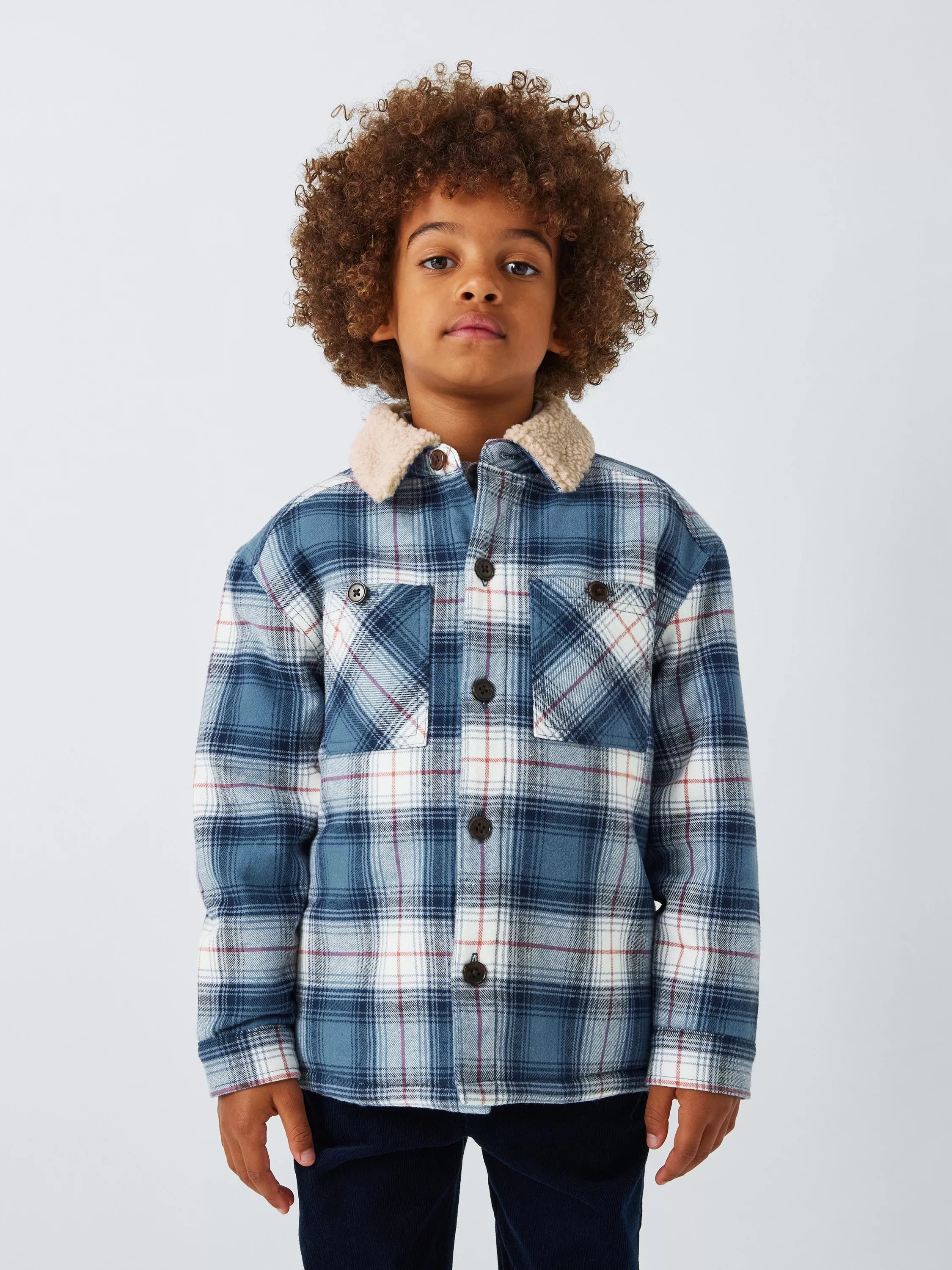 In a wintery plaid check, this shacket is topped off with a snug and cosy borg collar neckline.