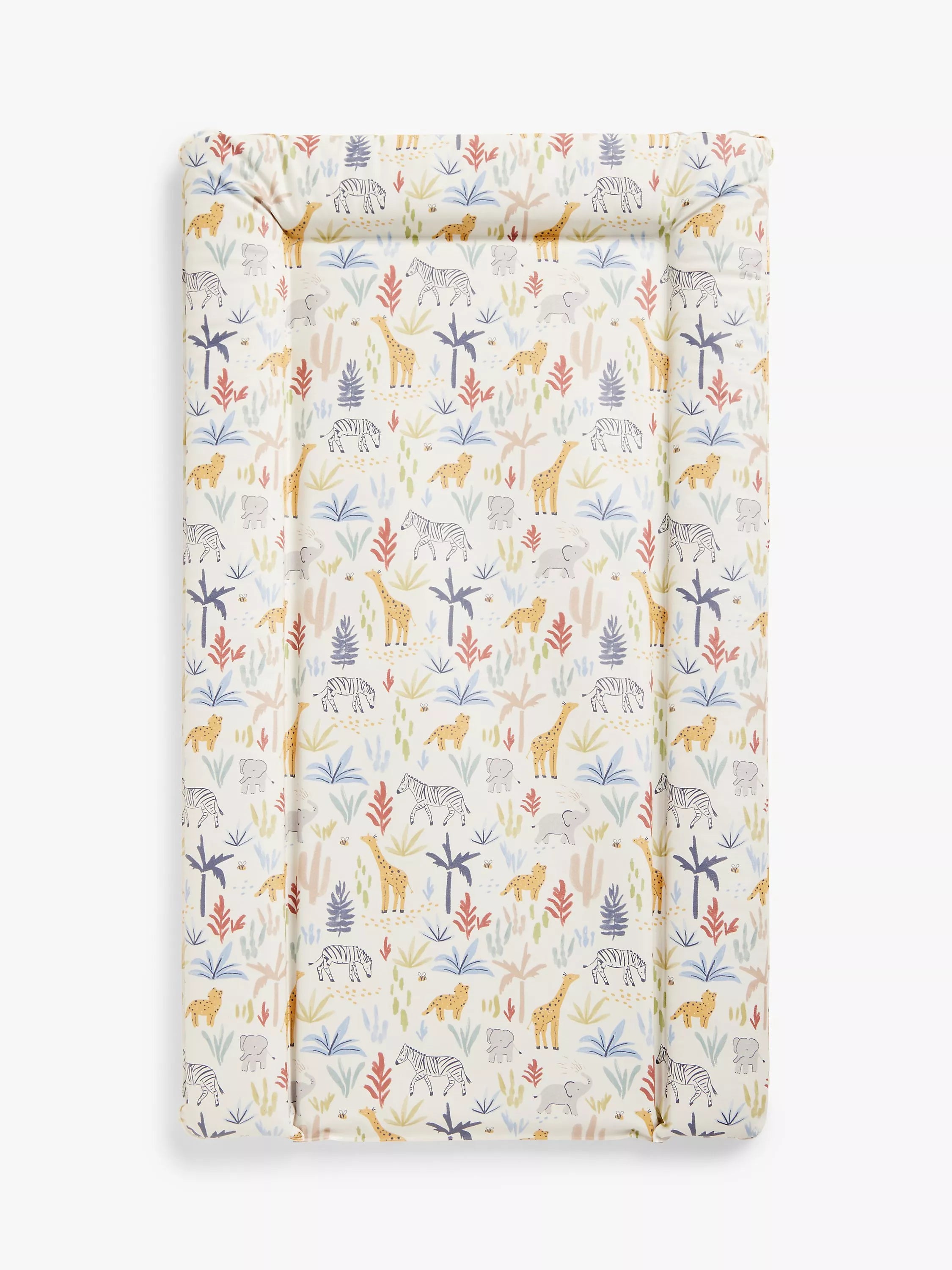 This quality wipe-clean changing mat is made from supportive fibre padding with a phthalate-free PVC cover. It's a comfortable place to change your baby. Covered in an attractive safari print, it makes a great addition to any nursery.