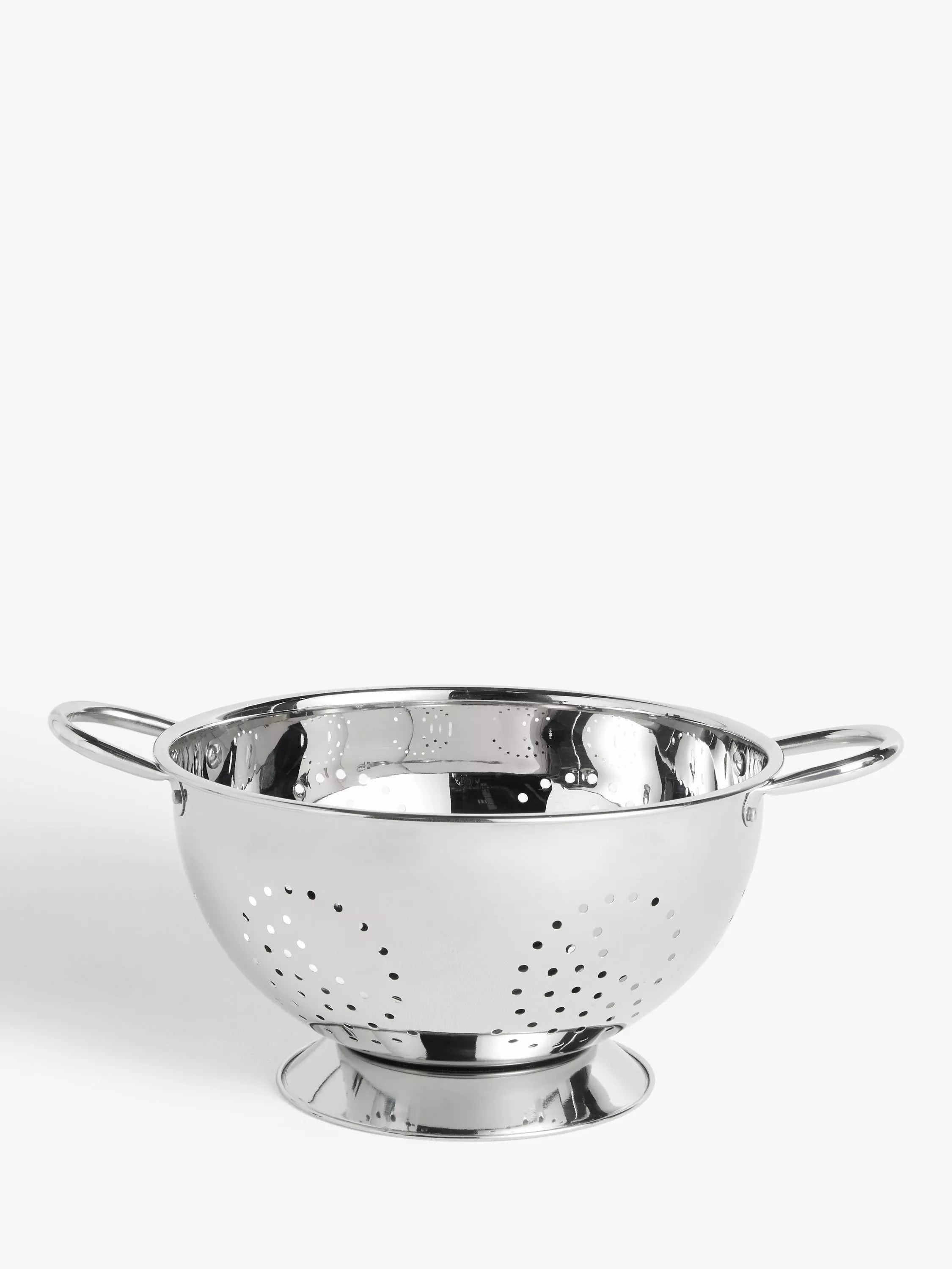 A kitchen essential, this sturdy colander is made of 14/1-grade stainless steel with a footed base and easy-to-hold handles. Dishwasher safe for easy and efficient cleaning.