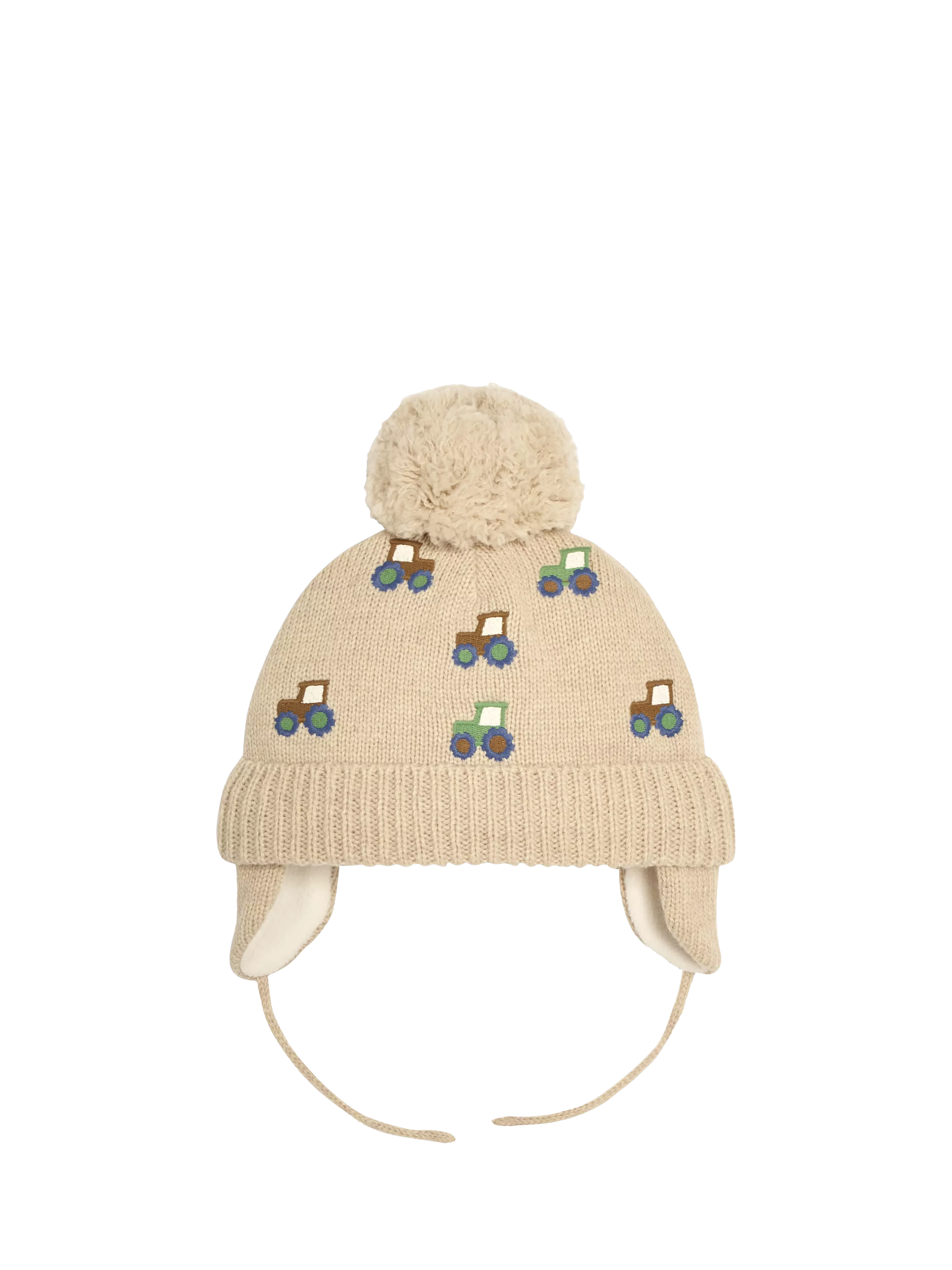 Made with wool, this embroidered hat will keep their ears, head and face warm and snug on the chilliest days. There are ties to fasten under the chin so it will stay put, even during the most active playtime, plus its fleece lining adds extra cosiness. It's unrestrictive, flexible and finished with a cute pom pom on the top.