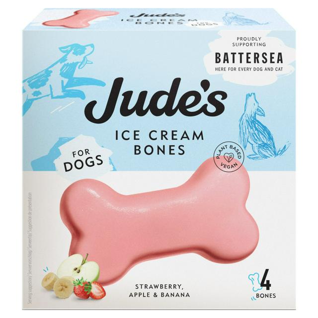 Product details Description Strawberry, apple & banana ice cream for dogs. Plant Based Vegan Vegan Friendly We use real fruit purees in this ice cream, which is loved by the dogs at Battersea. Hello We're Jude's and we make ice cream. We've made this refreshing treat for everyone's favourite family... Read More