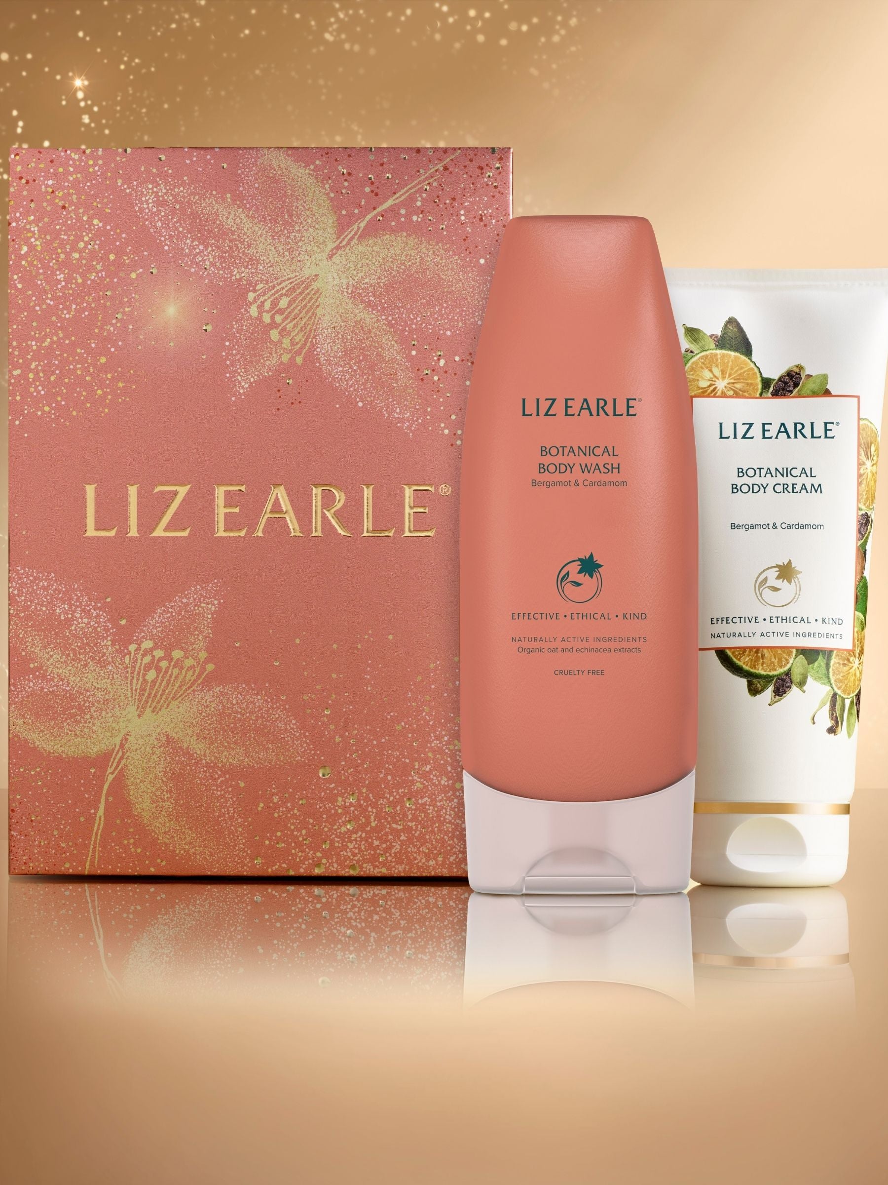 Elevate your shower routine with our spiced, citrussy fragrance blend, featuring notes of cardamom and zesty bergamot. Inhale the refreshing aroma of our Bergamot & Cardamom Body Wash as it cleanses and conditions, leaving skin feeling soft and smooth. Follow by massaging Bergamot & Cardamom Body Cream onto warm skin for nourished and smooth skin. What's inside: Bergamot & Cardamom Body Wash 200ml, Bergamot & Cardamom Body Cream 200ml. Naturally Active Ingredients refers to ingredients that are either to natural or natural origin ISO standard. Why you'll love it: Two full-sized Liz Earle products, beautifully scented with our special edition blend. Cruelty free and certified under the Leaping Bunny Program.