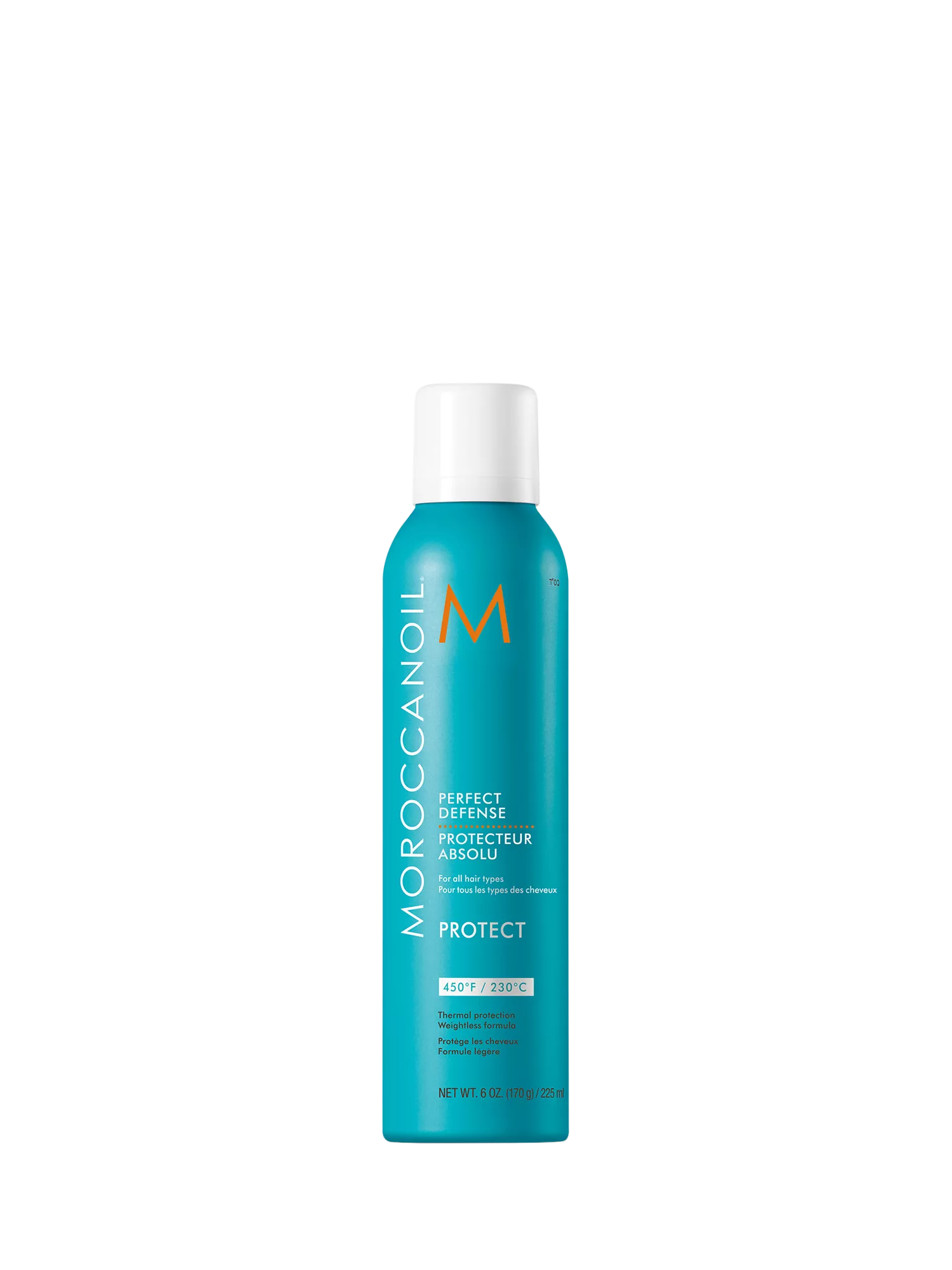 Moroccanoil Perfect Defense is a weightless, dry aerosol, heat protective spray.