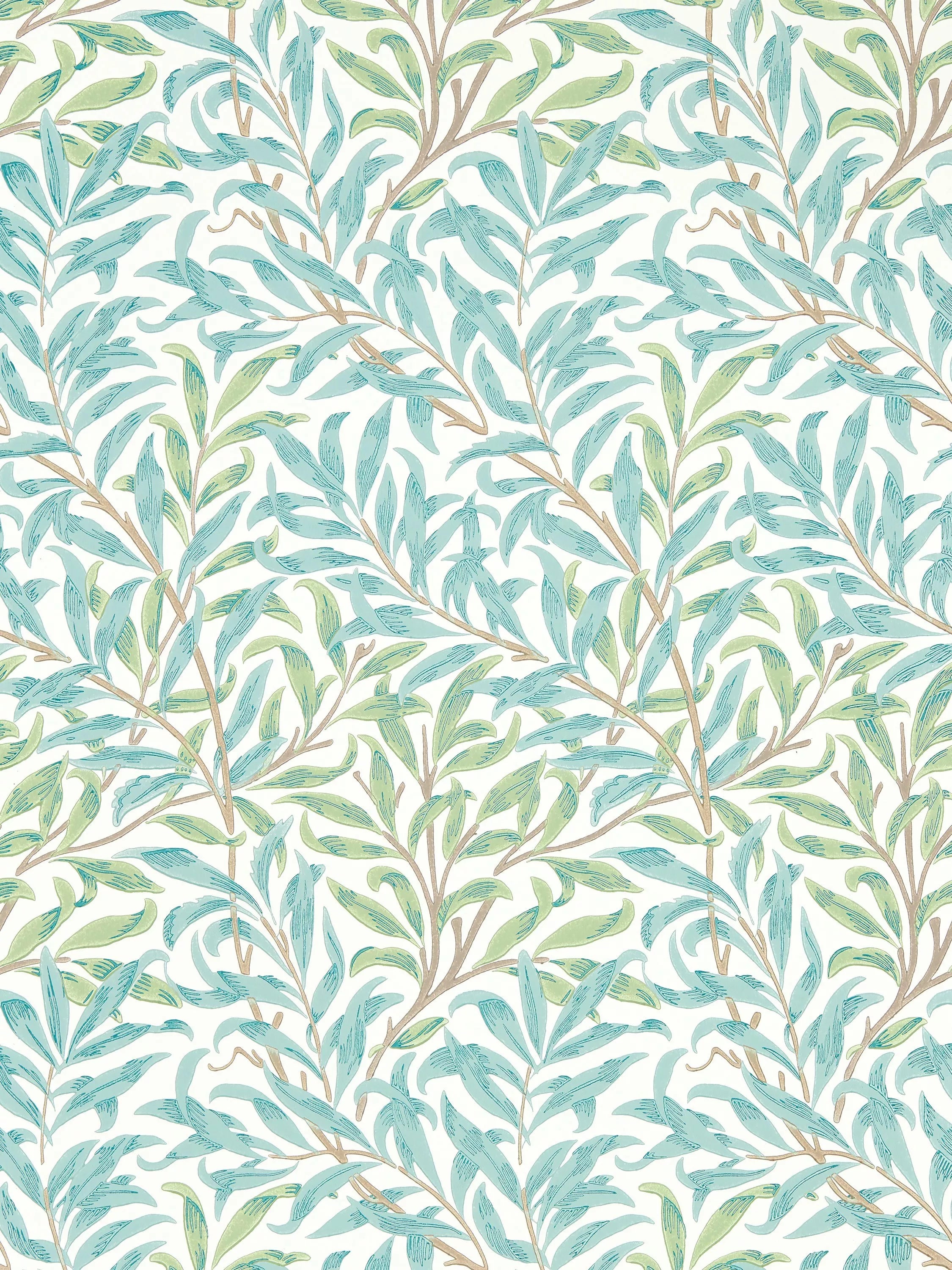 First produced in 1887, "Willow Boughs" is one of William Morris's most instantly recognisable patterns. Surface printed in a fresh new colour palette, entwining stems and delicate willow leaves combine in this enduring design which defines Morris's abiding reputation.