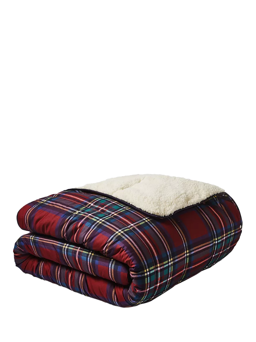 This cosy, tartan check throw is made with super-soft Sherpa fleece on one side and it has a silky microfibre reverse. Its plush Smartfil® filling is made from recycled PET plastic bottles and it will retain its shape, wash after wash. Offering comforting warmth without weight, there are also popper buttons so you can wrap it around yourself securely when you're lounging at home.