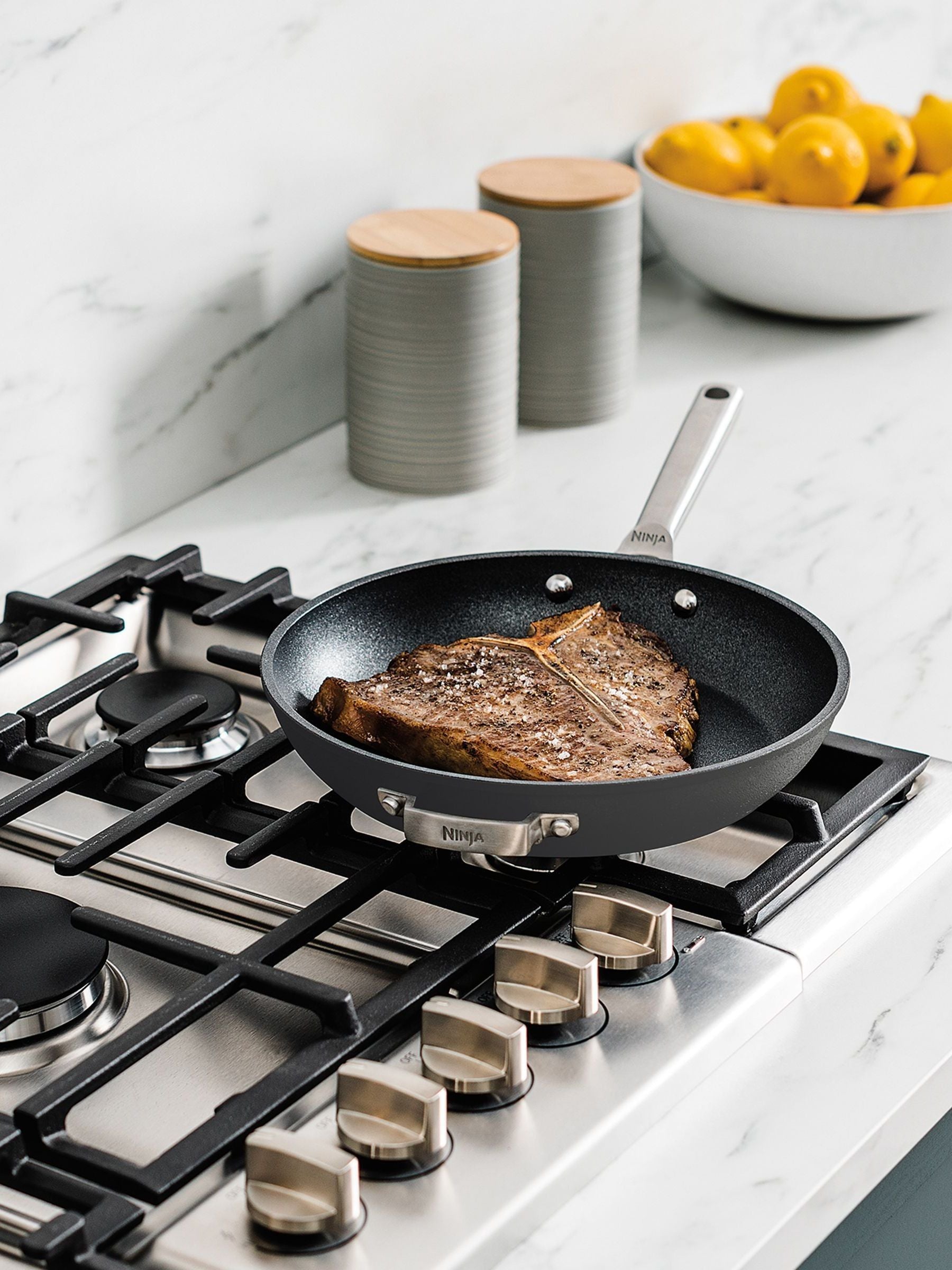 Cook using little to no oil: Exclusive to Ninja, ZEROSTICK stops food from sticking day after day, so your creations easily slide from the pan to your plate. Use little to no oil for a healthier way to cook, without compromising on cooking performance – sear like you can in stainless steel, without sticking.