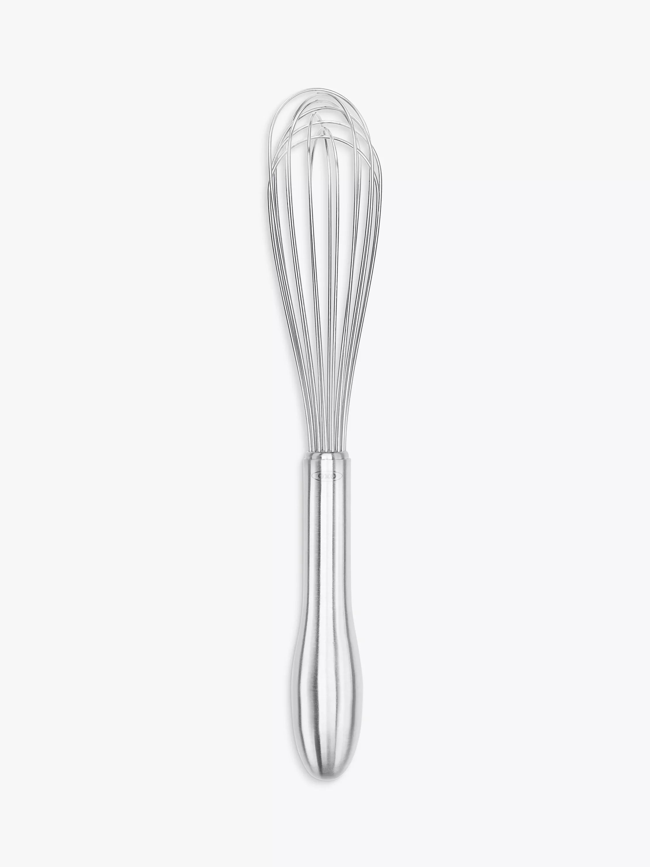 Whether you’re scrambling a few eggs or mixing a waffle batter, the OXO Steel 9-inch Whisk is a sleek tool that lets you whip with less fatigue. The elegant, brushed stainless steel handle has an innovative design that fits in the palm of your hand for comfort during repetitive motion. The wires are engineered to blend ingredients efficiently. Dishwasher safe.