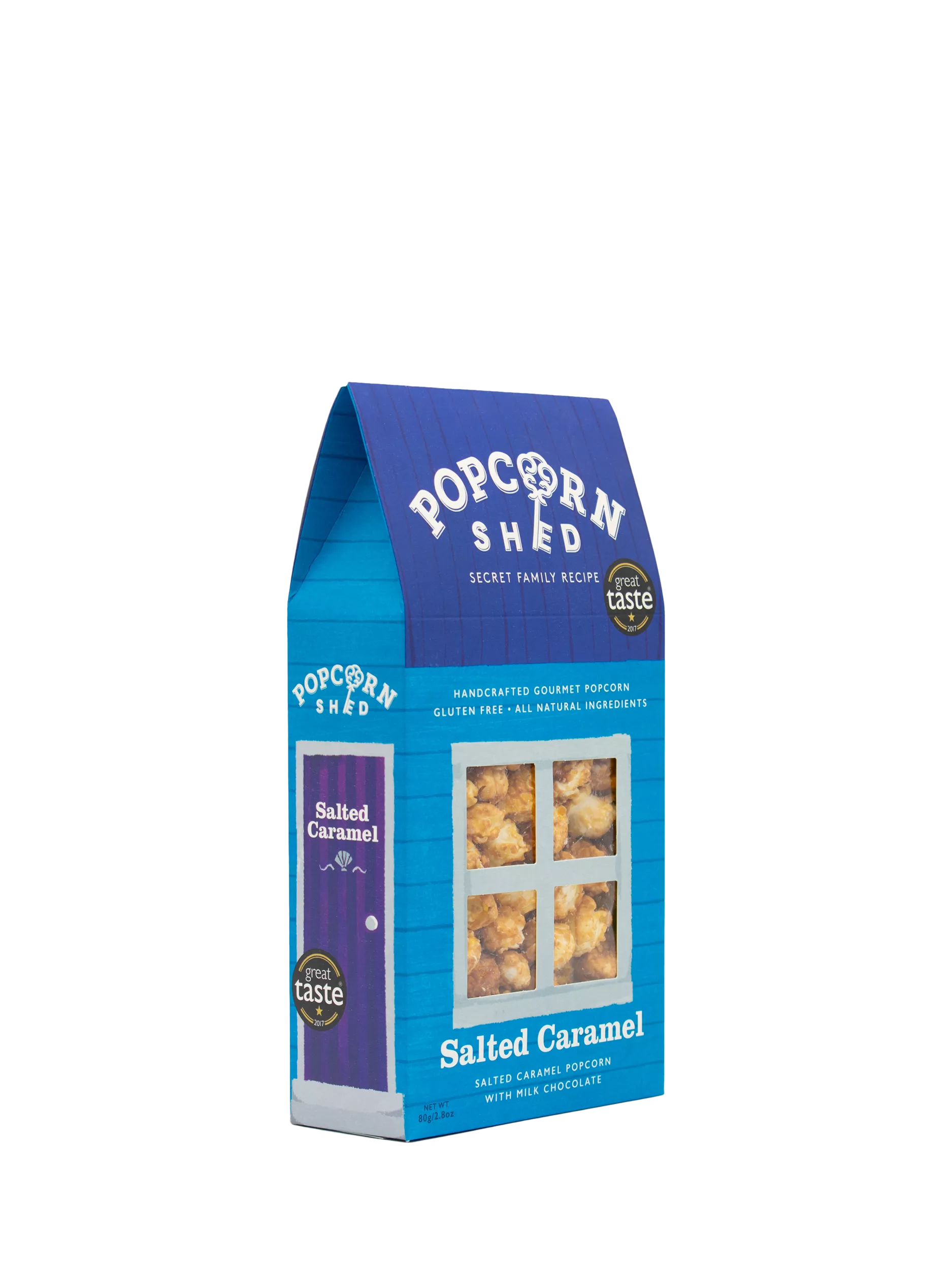 Sea salt caramel popcorn with Belgian milk chocolate.