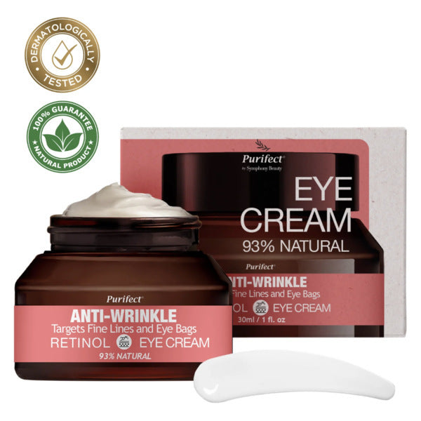 [ANTI-WRINKLE EYE CREAM] Infused with Retinol and Adaptogens, this 93% natural anti-wrinkle retinol eye cream combats against visible signs of eye aging such as fine lines, eye bags, and crow’s feet. This formulation helps visibly diminish wrinkles while plumping the delicate skin to support youthful vibrancy around the eyes. [YOUNGER-LOOKING UNDER-EYE] This formulation targets fine lines and eye bags, made specifically for the delicate skin under eye, cruelty-free, and fragrance-free. [DAY & NIGHT EYE CREAM] For best results, use after cleanser and serums but before moisturizers. Use AM and PM daily. If use in AM, make sure to use broad-spectrum SPF after. [KEY INGREDIENTS] This 30ml jar contains key ingredients such as Retinol that helps make the skin feel firmer, the texture appear more even, and prevents further damage and Betaine that helps the skin stay plump, hydrated, and youthful by helping your under-eye maintain and regain moisture. [SKINCARE INNOVATION] All of Purifect products are dermatologist-tested, made in U.S.A., suitable for all skin types, Leaping Bunny Certified for cruelty-free, NaVOBA certified for a veteran-owned organization, and formulated without any harsh chemicals like parabens, sulfates, phthalates, etc.