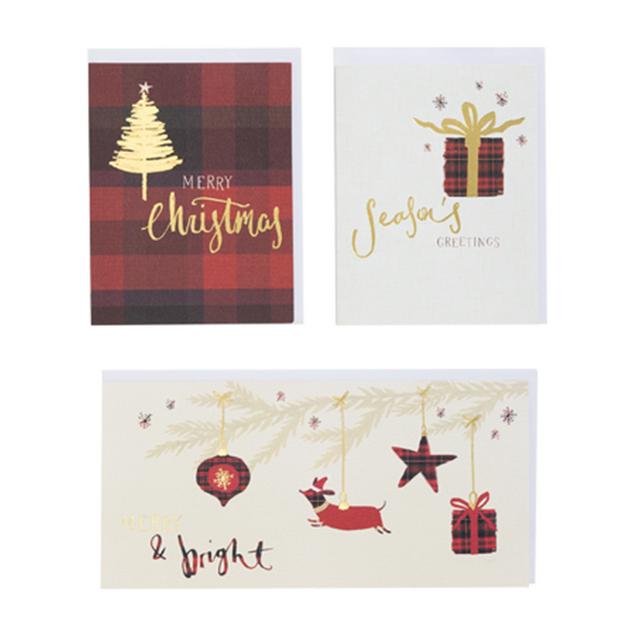 Product details Description A touch of tartan. Send warm wishes to your loved ones with our gold and check charity cards. The pack of 20 features 3 illustrated designs. In this 20 pack of charity Christmas cards you will have 3 different options to choose from complete with white envelopes... Read More