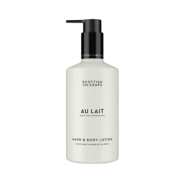 Au Lait fragrance with oat & chamomile Nourishes and hydrates your skin Ethically crafted with premium ingredients Vegan-friendly Made in Scotland Indulge in the timeless luxury of Scottish Fine Soaps, infused with the comforting Au Lait fragrance, blending creamy milk extracts with soft, powdery notes for a beautifully fresh scent. This collection brings the soothing essence of milk to your self-care routine, wrapping your skin in rich nourishment and a delicate, elegant aroma. Hand & Body Lotion 300ml: Nourishing hand and body lotion with oat, chamomile milk and allantoin, leaving skin soft, smooth and delicately creamy aroma. Whether you are treating yourself or searching for the perfect gift, each piece offers a pampering moment with the signature, long-lasting fragrance. Vegan-friendly and made in Scotland, these products are a perfect addition to any skincare routine. Let the luxurious, comforting scent of Au Lait envelop your senses in pure indulgence.