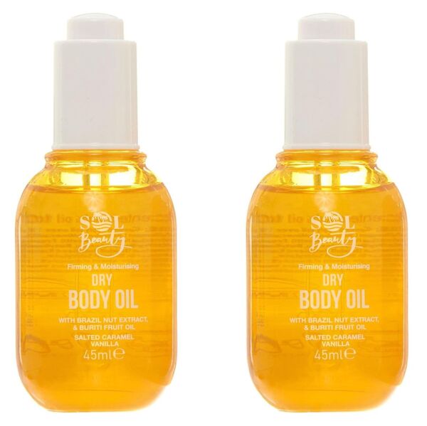 Indulge your skin with Sol Beauty Dry Body Oil, a richly scented formula that combines the nourishing benefits of Brazil Nut Extract and Buriti Fruit Oil. This vegan-friendly body oil provides intense hydration while firming and moisturising your skin, leaving it smooth, soft, and well-conditioned. The lightweight, quick-absorbing formula ensures no greasy residue, so you can enjoy deeply nourished and firmed skin with the comforting scent of salted caramel vanilla.
