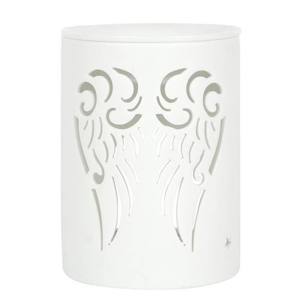 This Something Different Angel Wings Oil Burner presents a distinctive aesthetic accent for your home fragrance collection. Constructed from ceramic, this piece features an elegant angel wings design with attractive cut-out detailing. It is perfectly engineered for safely diffusing the delicate aromas from your preferred scented oil or wax melts.