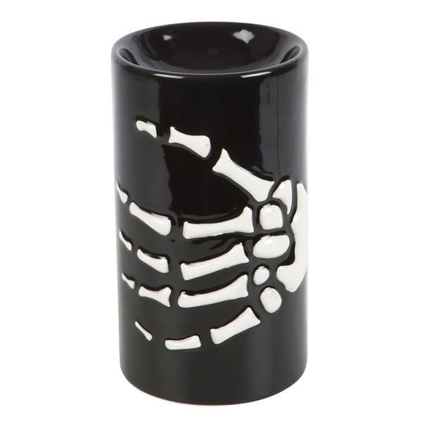 This distinctive oil burner from Something Different features a captivating skeleton hand design for atmospheric home fragrance diffusion. Constructed from durable polyresin, it offers a striking visual centerpiece for your favourite scented oils or wax melts.